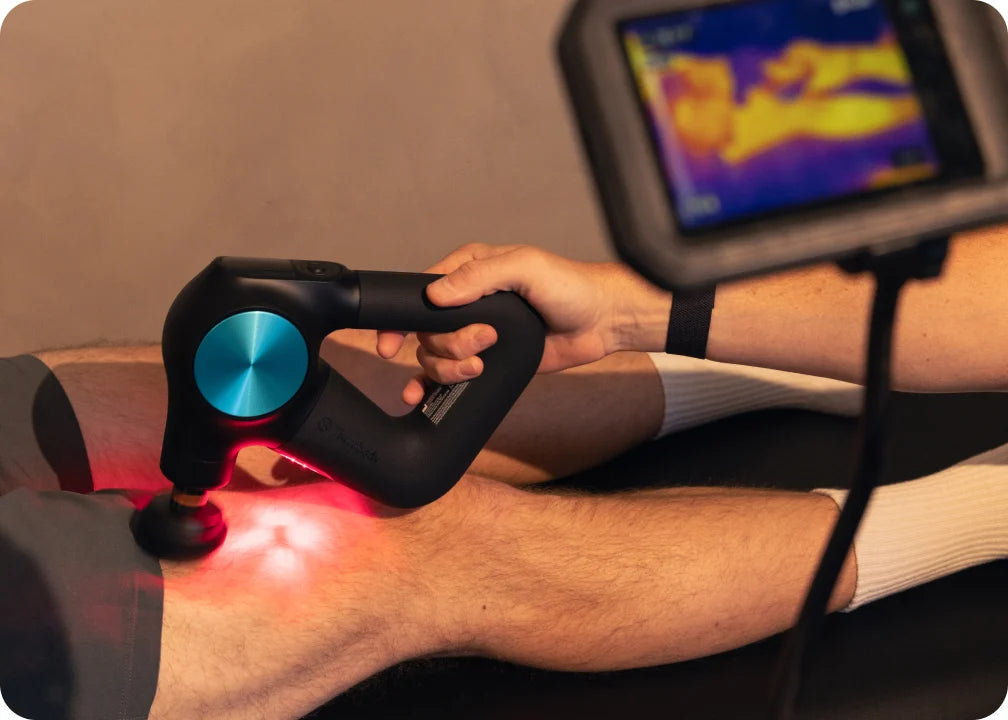- Portable heated massage gun for enhanced recovery and optimised warm-ups