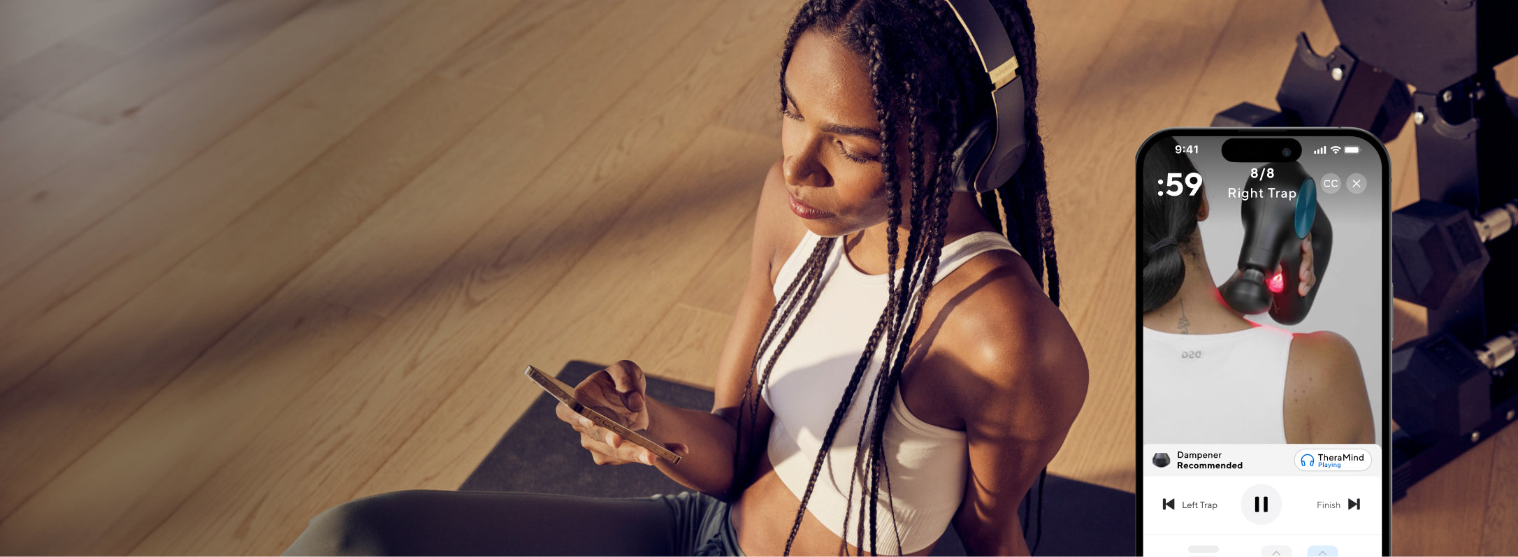 Recharge fast post workout. Massage away muscle fatigue, soreness and knots with expert guided recovery routines in the Therabody App.