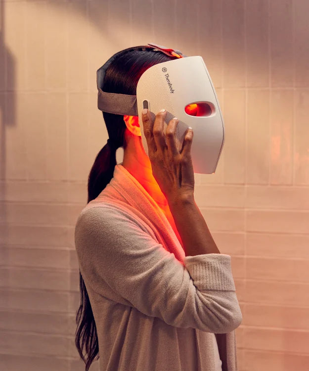 An award-winning, FDA cleared LED skincare mask with vibration therapy