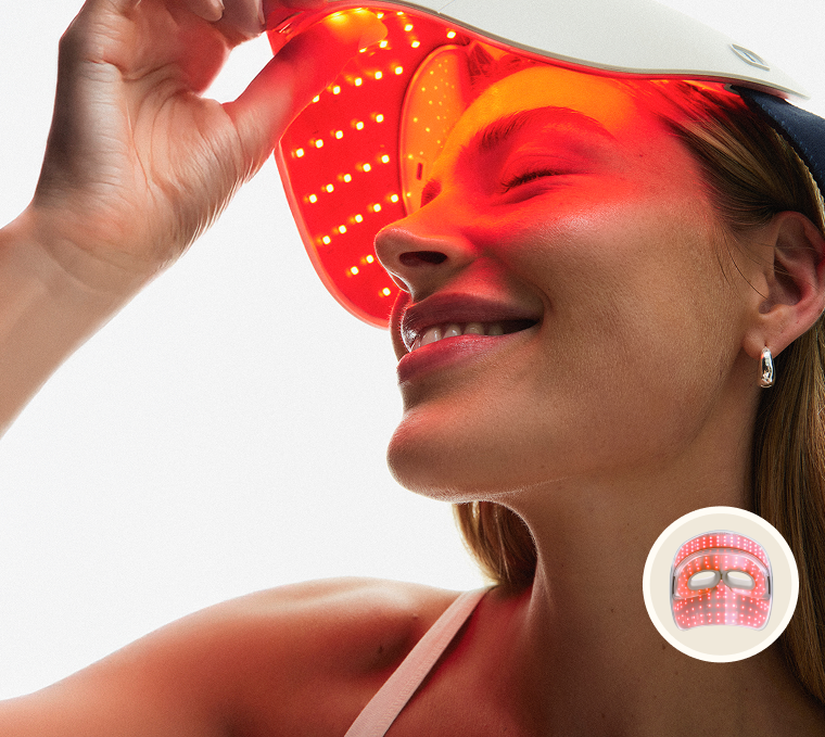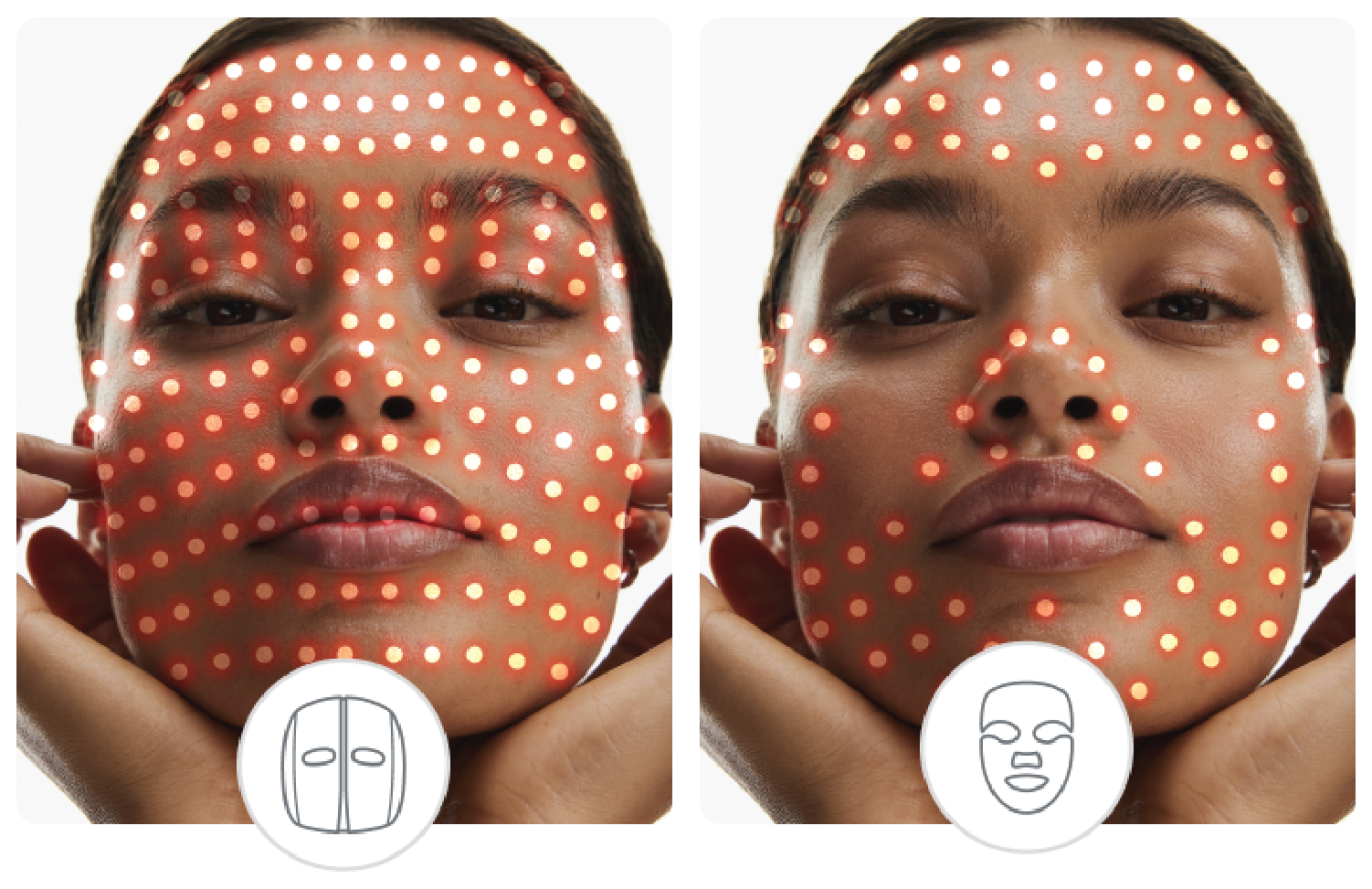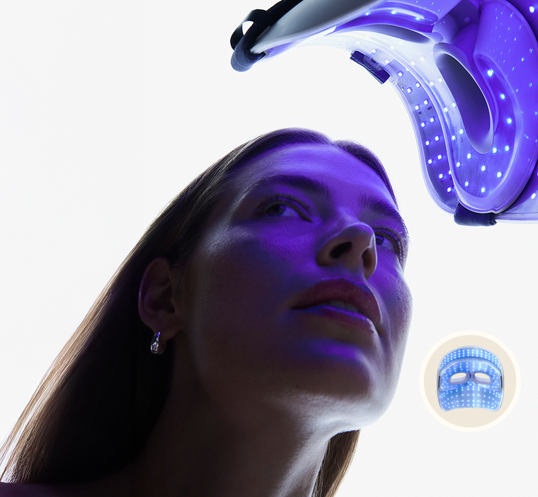 Our LED mask uses 504 red, red + infrared and blue LED lights to visibly improve overall skin health in just 12 minutes a day. In as little as 8 weeks, it's clinically proven to reduce under-eye wrinkles and fine lines, improve radiance and reduce sagging skin.¹ Plus, it offers gentle vibration massage on the scalp for a spa-like experience.