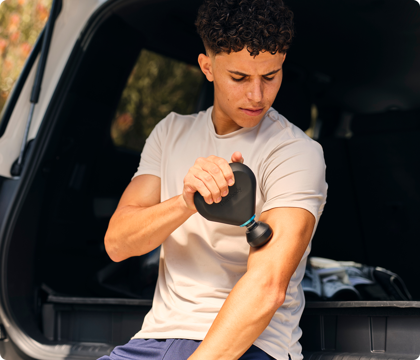 Theragun Mini Plus is our only heated, travel-sized massage gun to activate muscles, ease soreness and speed up recovery, delivering results 3x faster than percussive massage alone.¹ Its lightweight, portable design is perfect for pre-gym warm ups, on the sidelines and fits easily in a locker.